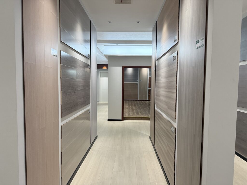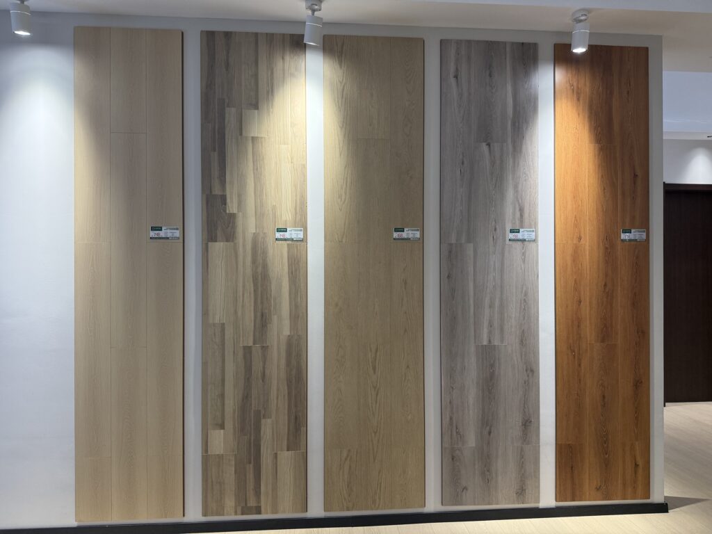 Stepping into this wooden flooring showroom feels like stepping into a gallery of natural warmth—walls lined with rows of flooring samples, each telling a quiet story of texture, tone, and craftsmanship.